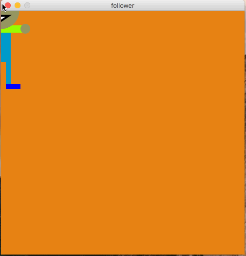 You should name your code file follower.pde. You should only use the features of processing we’ve discussed in class so-far (files using features that we have not covered in lecture will be flagged as cheating).